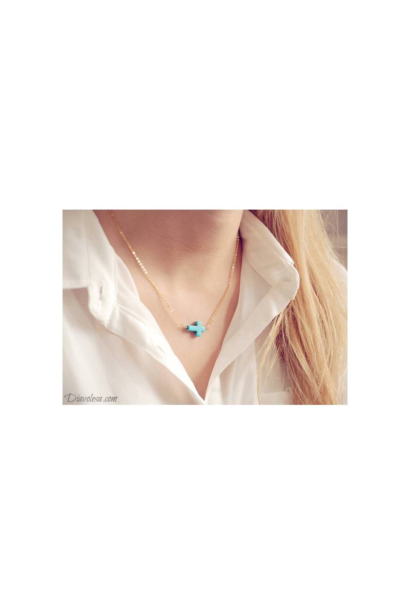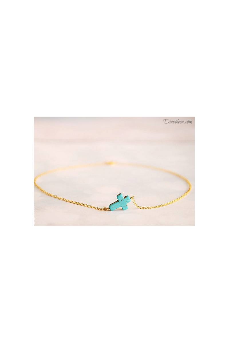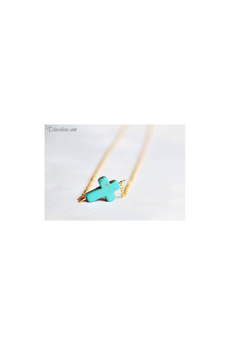Kaklo papuošalas "Turquoise Cross"