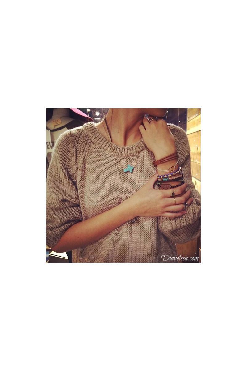Kaklo papuošalas yra pagamintas iš melsvos spalvos kryželio formos