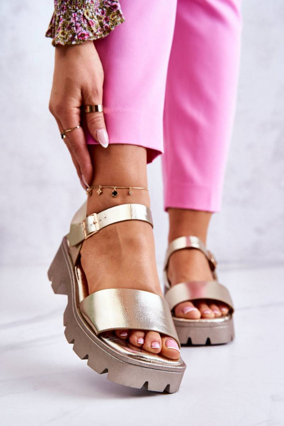 Sieviešu basenes ar papēdi zelta krāsas Sovie