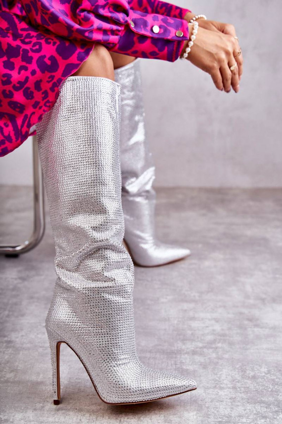 Stilīgasrnas garie zābaki ar papēdi ar mirdzošiem spīdumiņiem Sudraba krāsas Lovisa