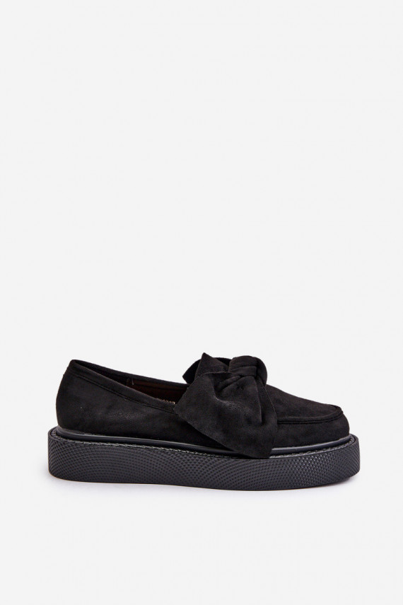 Sieviešu mokasīni ar paaugstinātu zoli un lentēm melnā krāsā Naivine