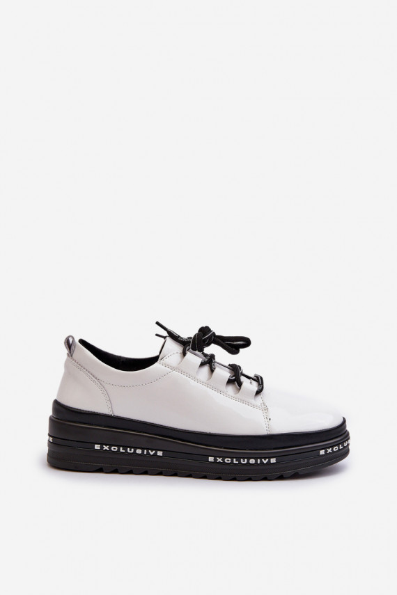 Baltas krāsas sneakers ar platformu un lakotu efektu, S.Barski LR592B