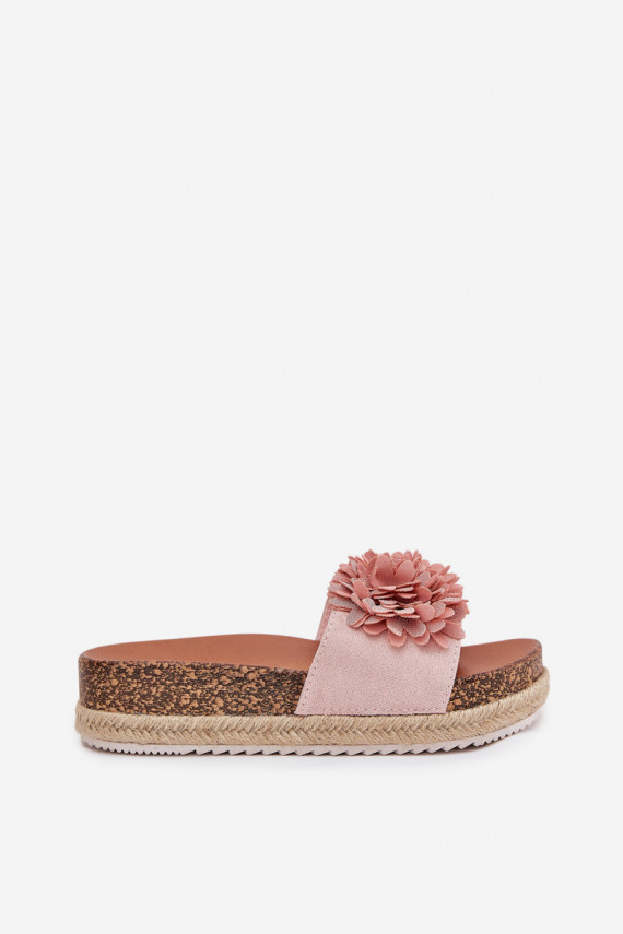 Sieviešu rozā krāsas čības ar platformu un ziedu motīviem Tessara