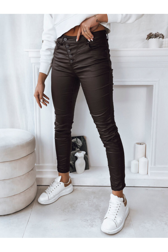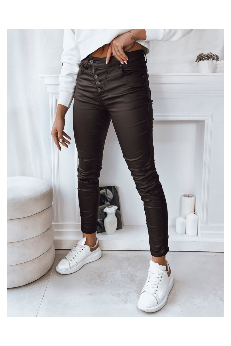 KARLA Sieviešu ādas imitācijas bikses tumši brūnas, UY1787