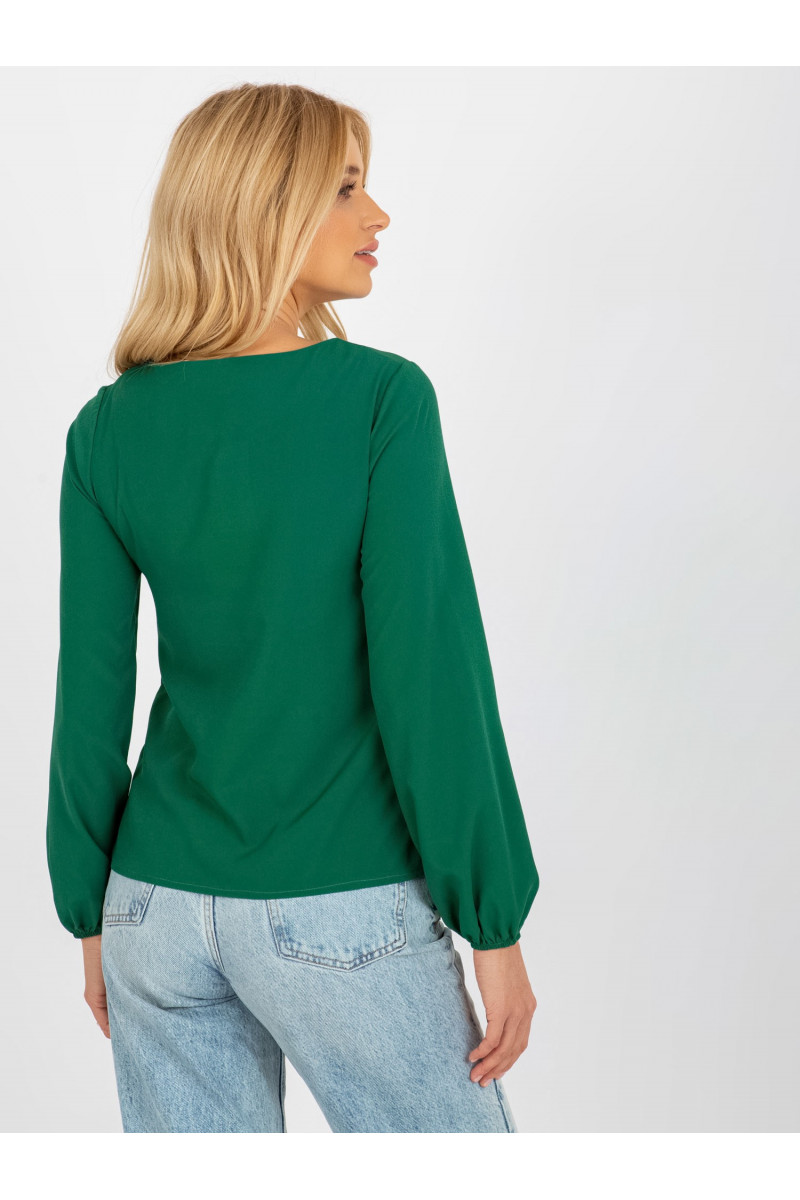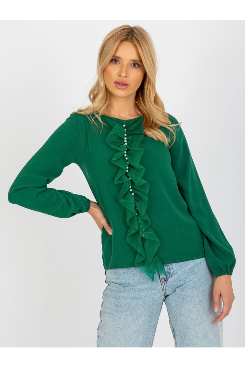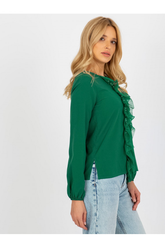 Tumši zaļa svinīga blūze ar aplikāciju un sietu.