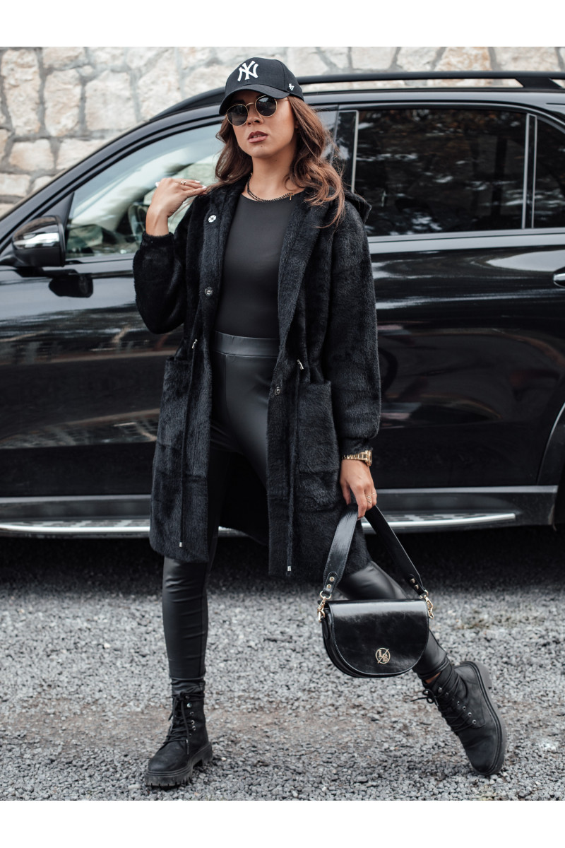 Sieviešu garais mētelis ar kapuci MELBY melns