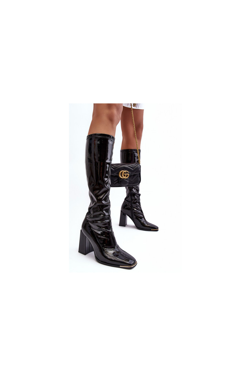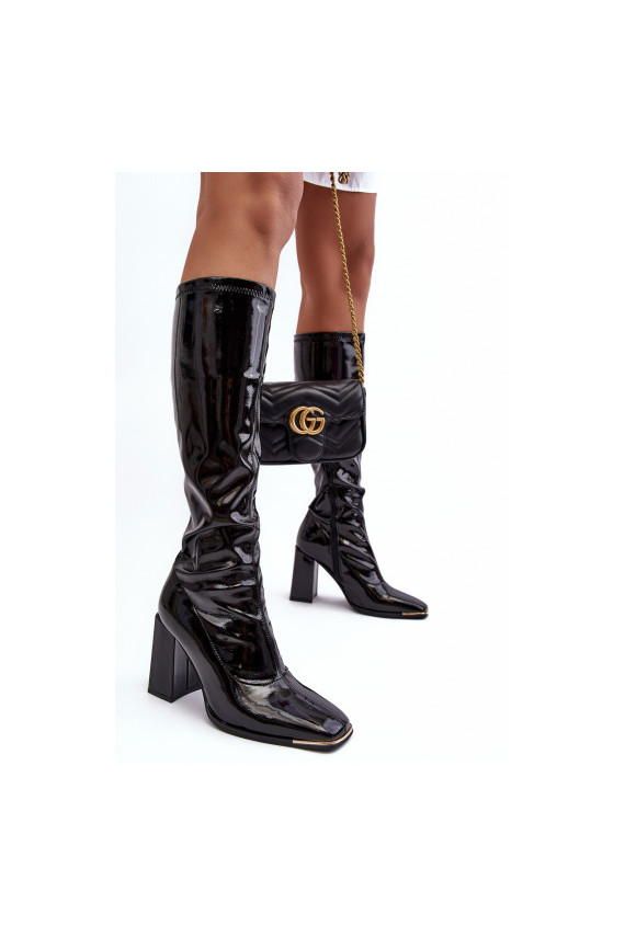 Sieviešu garie zābaki uz papēža Shelovet Melnas krāsas