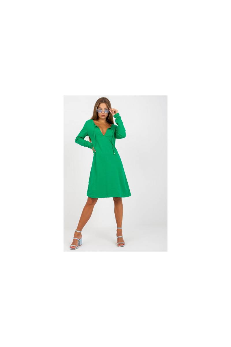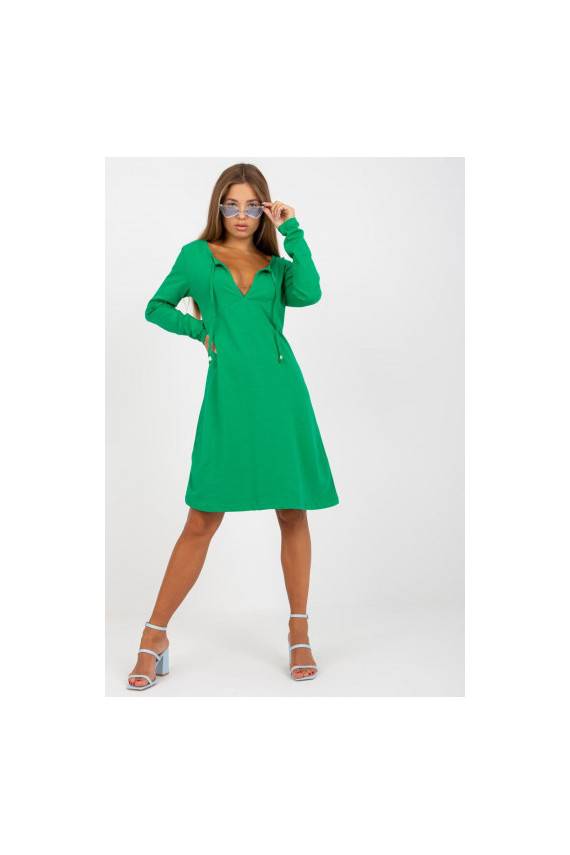 Kleita of simple cut with long sleeves. The dress features a deep neckline and a tie-up.