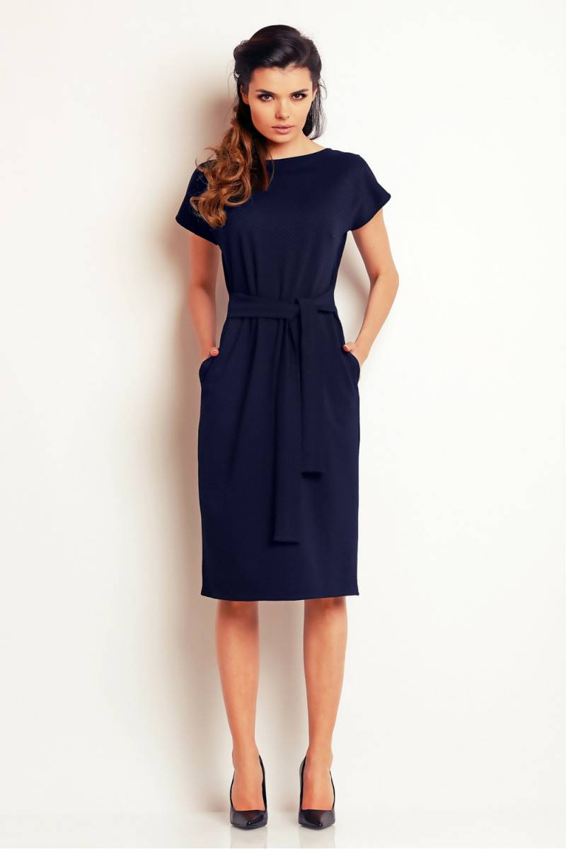 Straight cut Kleita with short sleeves. Kleita with tie belt at waist. Ideal for summer.