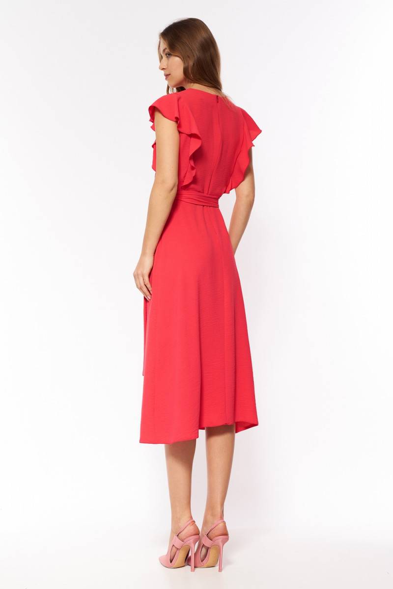 Elegant yet charming trapeze cut Kleita with ruffles on the sleeves. This masks imperfections and emphasizes the strengths of a female figure. Kleita is suitable for many occasions, great for special occasions, but also for work or a meeting with friends.