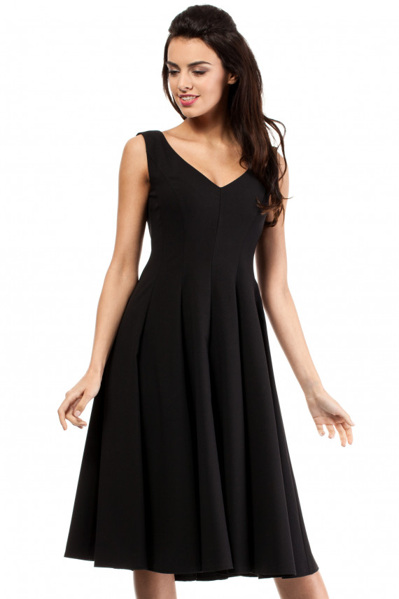 Kleita in wedges. Sleeveless, fitted top with deep V neckline at front and round neckline at back. Svārki is flared. Covered zip at the back.