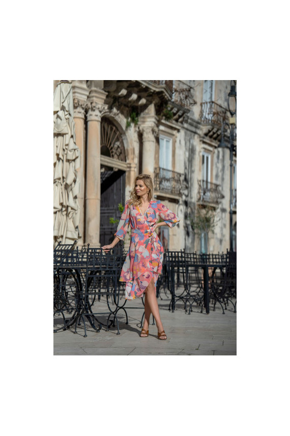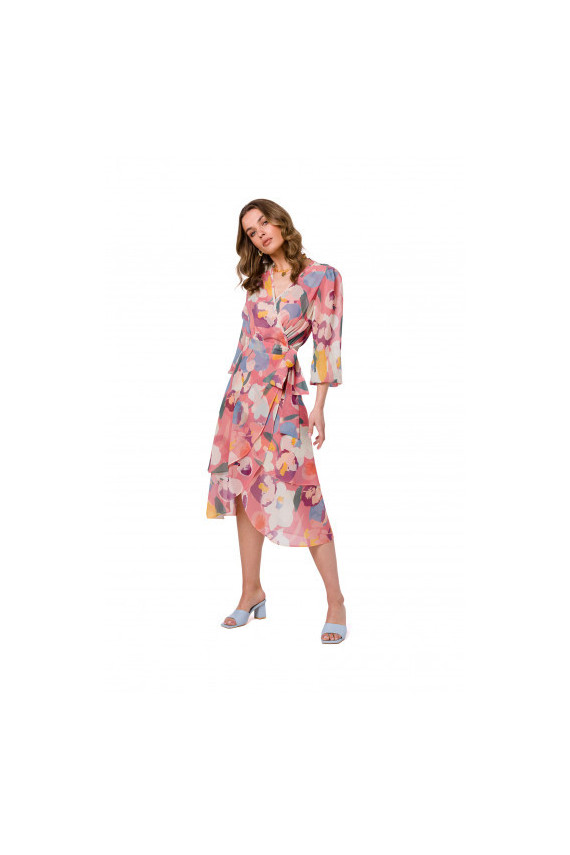 A chiffon overlap Kleita with two ruffles and a tie at the waist is an option for many occasions. The Kleita is unlined.