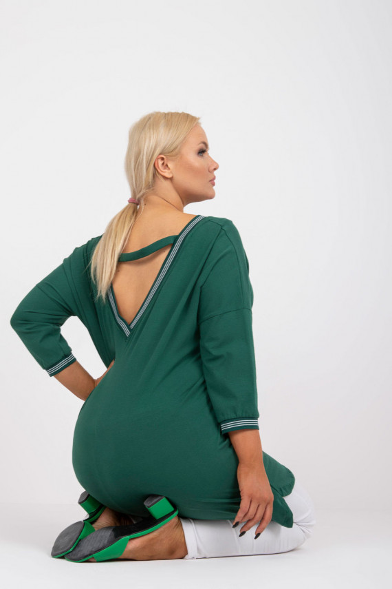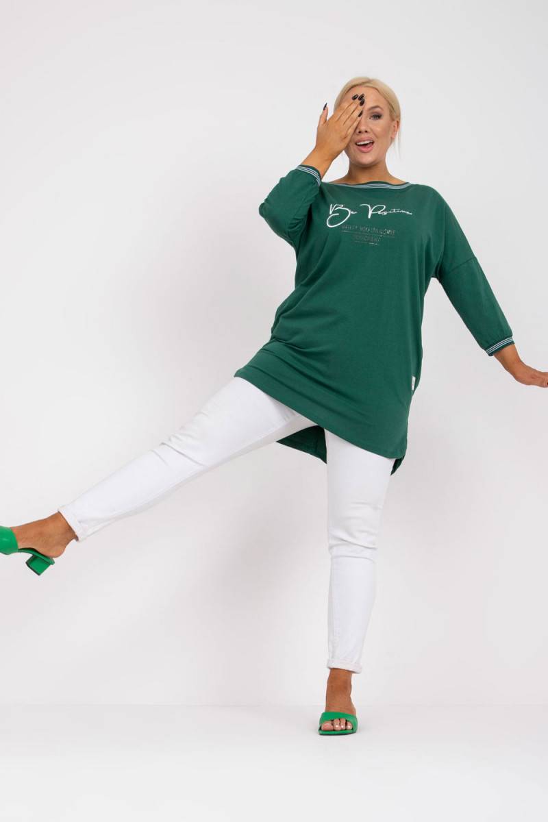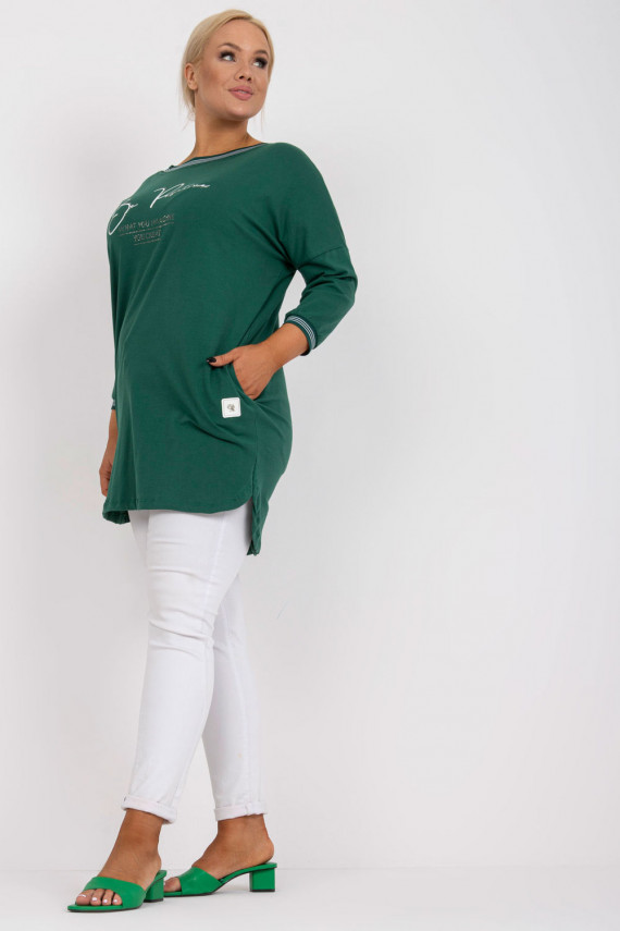 Tunika with 3/4 sleeves and a round neckline. Features slip pockets on the sides and a decorative inscription on the front.
