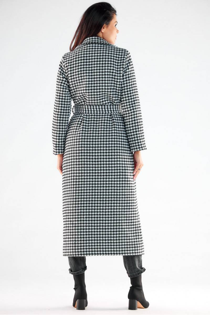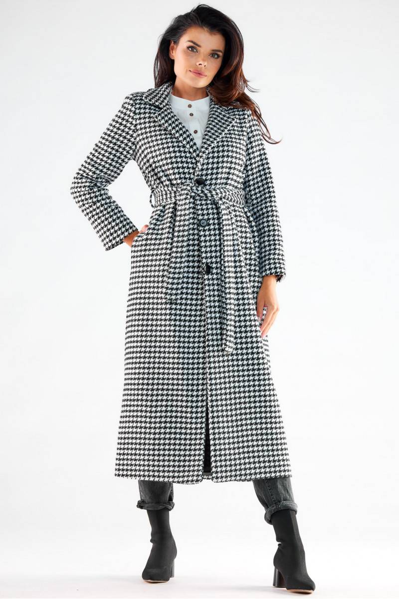 Mētelis made of pleasant, warm Materiāls: with a maxi length. The straight cut of the coat and sleeves optically slenderize the silhouette. Fastened with three large buttons and additionally tied with a belt. The coat is fully lined. A great choice for going out with friends, but also as an outer garment for a corporate meeting.