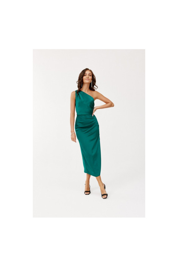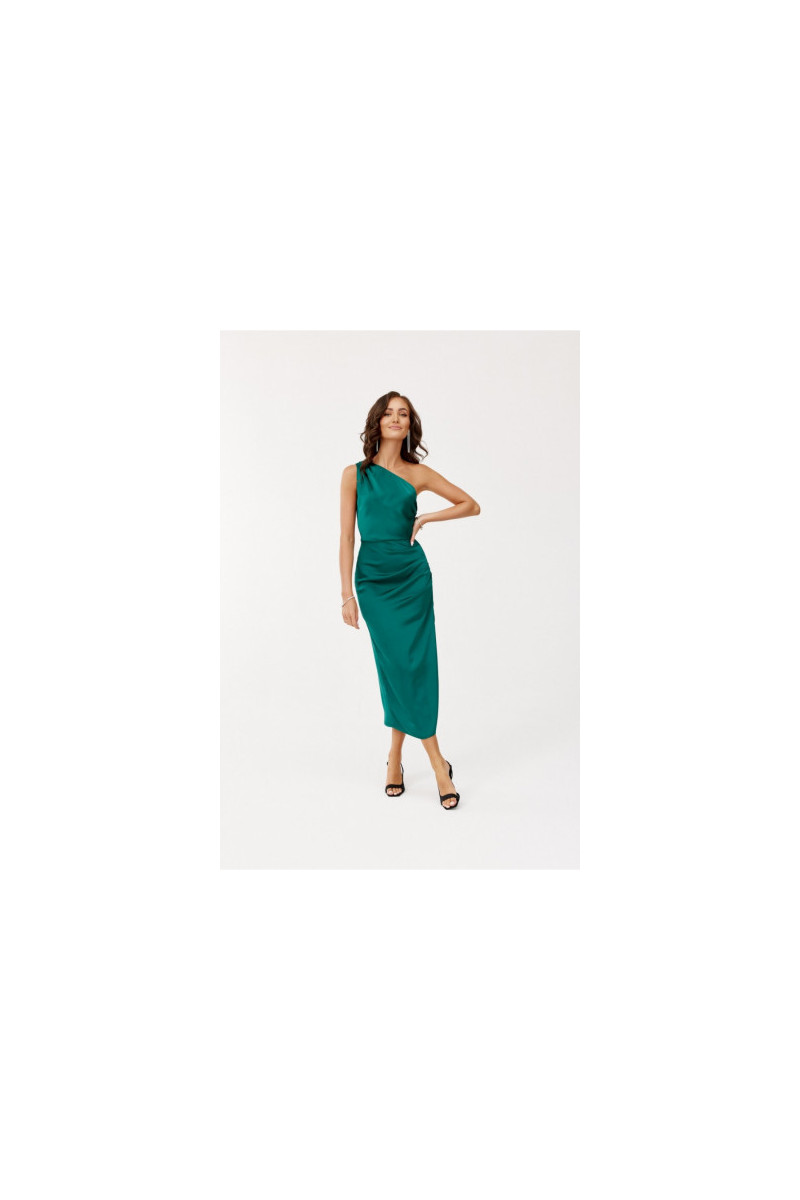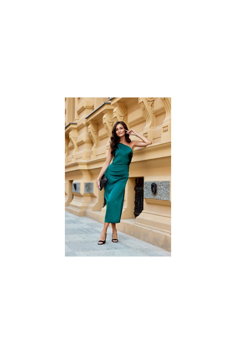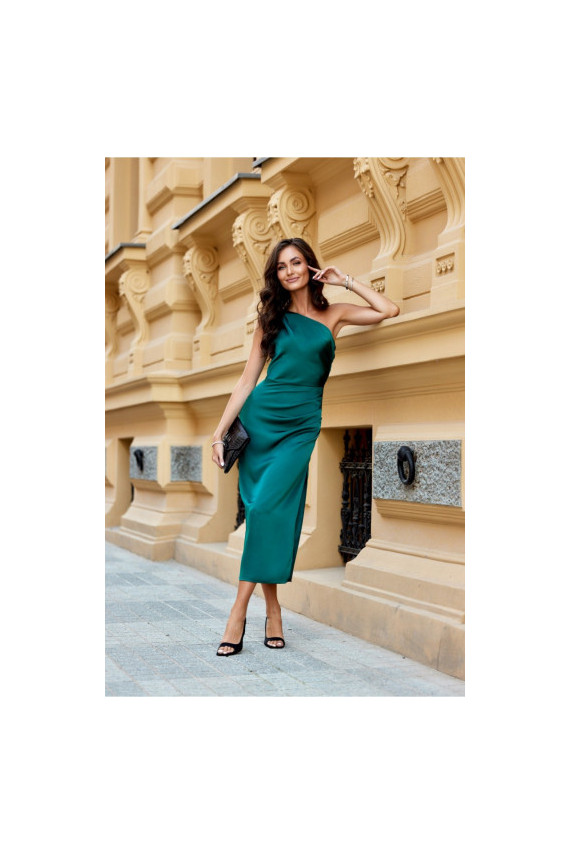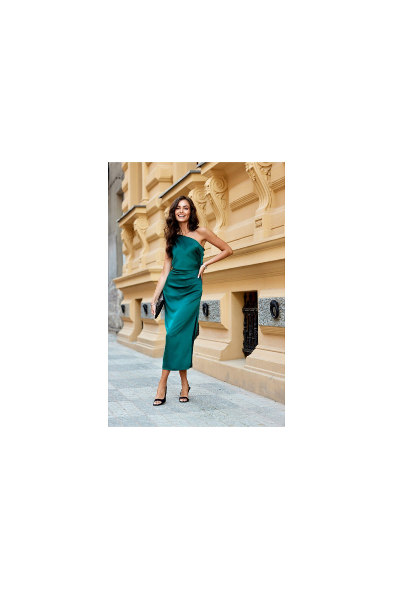 One-shoulder midi Kleita with a subtle slit at the leg is made of delicate satin Materiāls:. On the side there is a crease, which perfectly conceals any imperfections. A wide shoulder strap with creases on one shoulder gives it a unique character. Fastened with a covered zipper on the side of the Kleita. This midi Kleita is not only elegant, but also functional. The midi length gives the Kleita a refined, feminine style. This Kleita cut will allow you to feel original by emphasizing your individual style and is sure to attract attention by making you stand out from the crowd regardless of the occasion. The product is made and sewn in Poland.