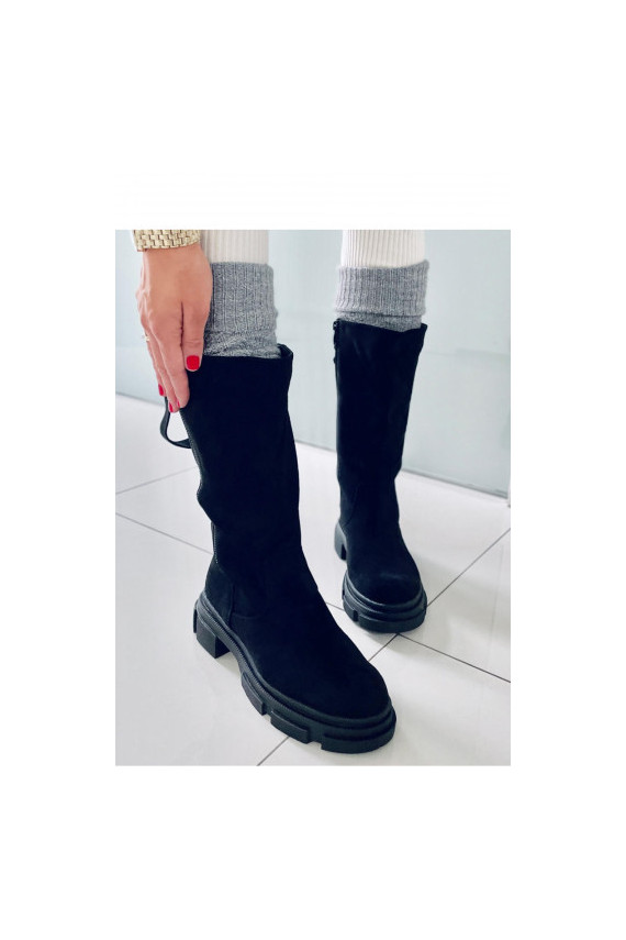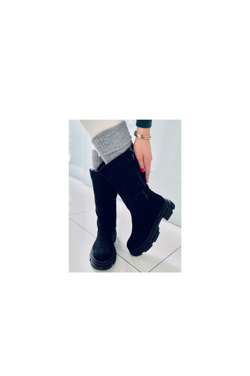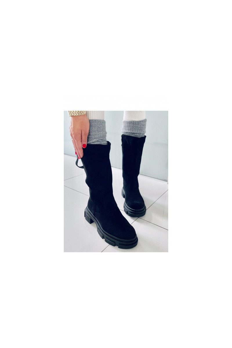 Women's suede boots on a thick sole. They have a timeless cut of the jackboots type, which will always be on trend : ) The has a practical zipper closure for easy putting on. Do not be persuaded any longer! They are made of eco-suede, and the interior is lined with mīksta kažokāda.