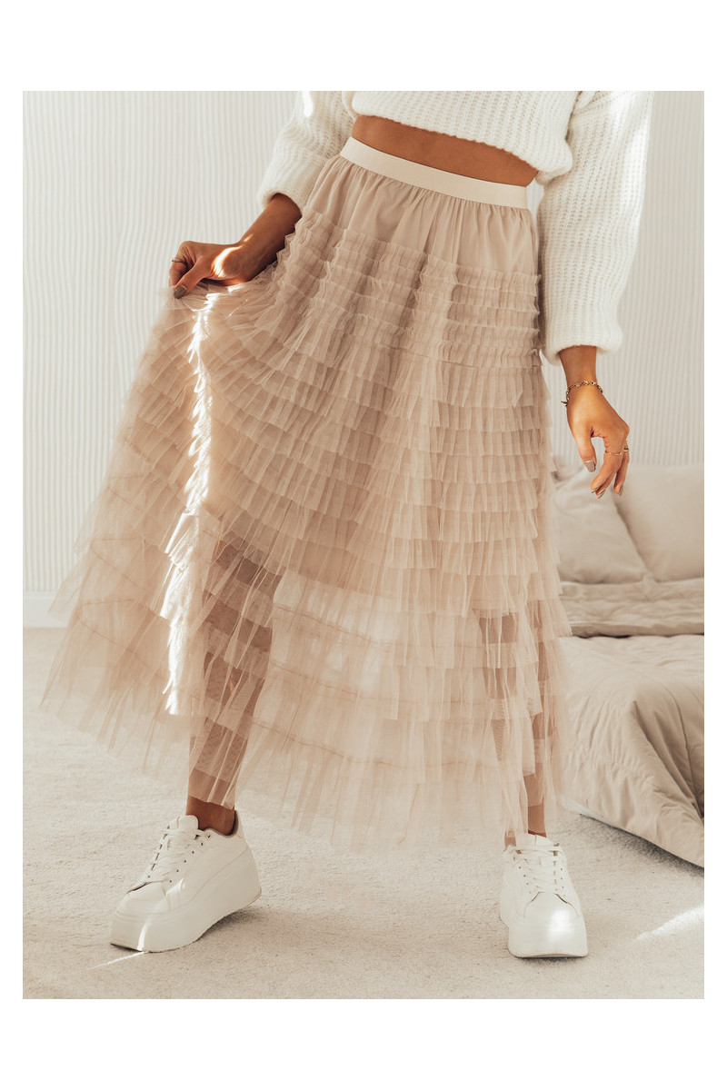 Maksimāla garuma tilla svārki vienmēr ir ideāls modes noteicējs. Modes garums, elastīga jostasvieta un interesantas tilla šuves veido stilīgu kopumu. Tas izskatīsies lieliski gan elegantā, gan ikdienas versijā. Pieejams trīs krāsās.
