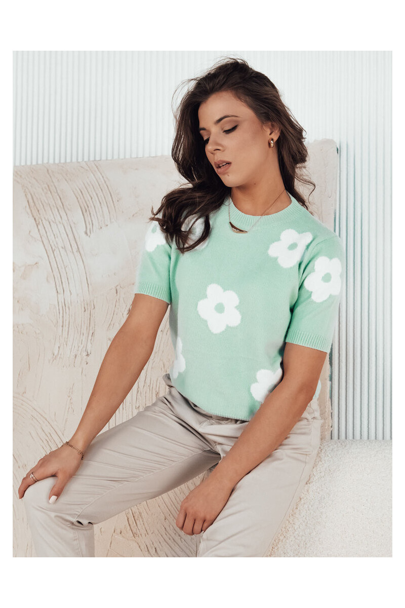 CORIAN sieviešu džemperis. Izceliet savu stilu un sievišķību ar šo eleganto trikotāžas džemperi ar īsām piedurknēm. Neatkarīgi no gadījuma, smalks ziedu raksts uz džempera piešķirs jūsu tēlam vieglumu un svaigumu.