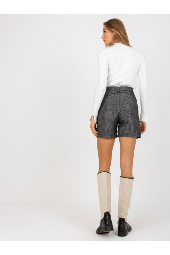 Tumši pelēki sieviešu šorti, eleganti ar iesiešanu.