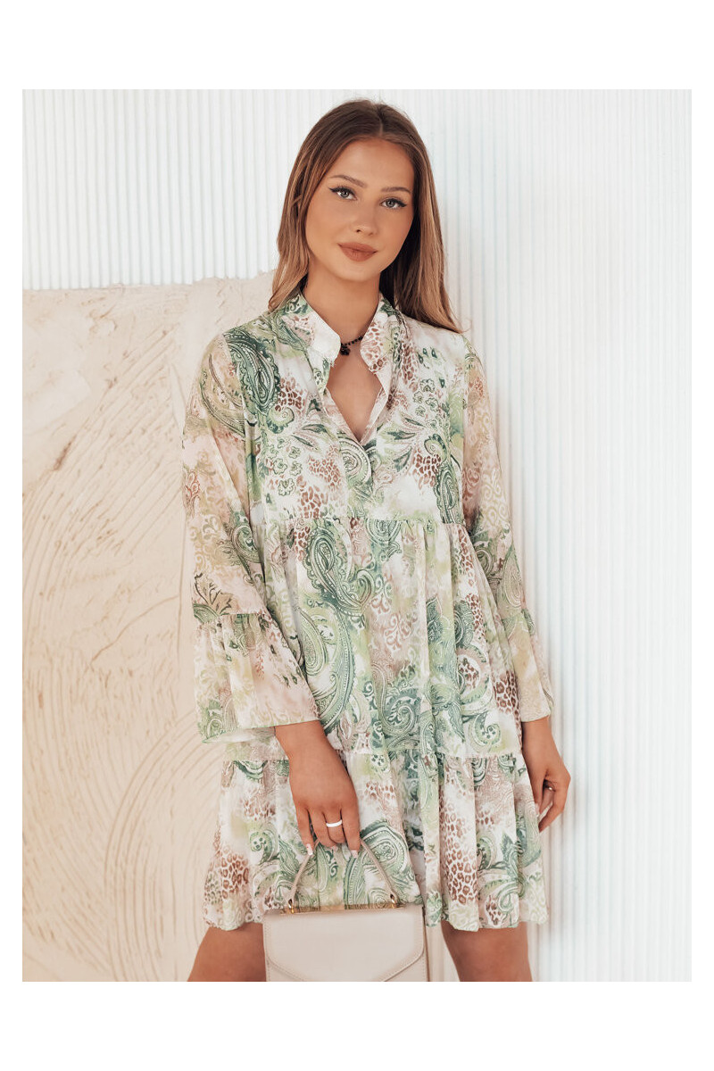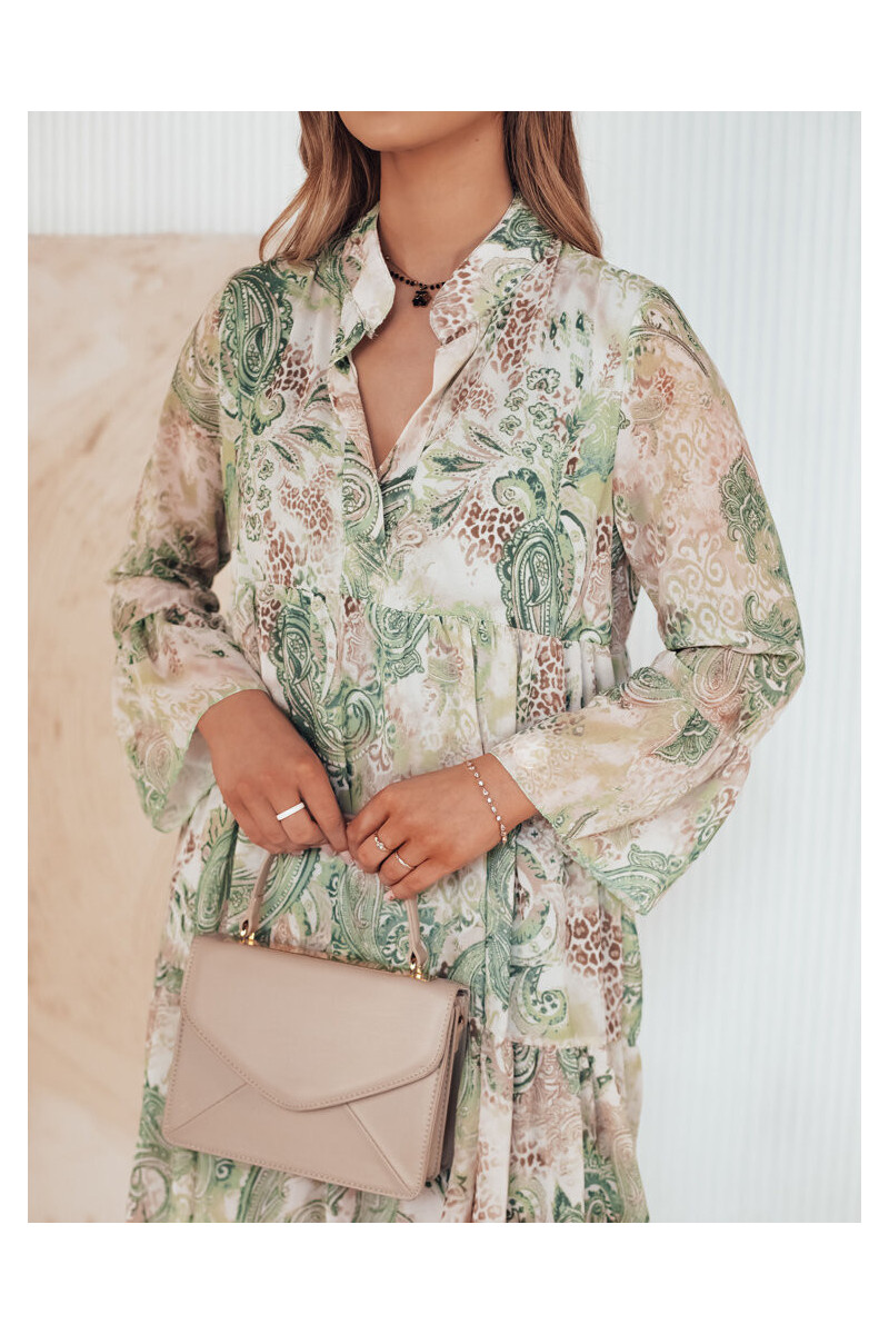 Iemīlēties PRINSA kleitas unikālajā dizainā. Paplašinātās piedurknes piešķir vieglumu, savukārt stāvveida apkakle ar elegantu izgriezumu izceļ kaklu un seju. Izteiksmīgais volāns apakšdaļā piešķir kleitai gaisīgumu, bet smalkais ziedu raksts piesaista uzmanību. Izveidojiet ar to neaizmirstamu tēlu!