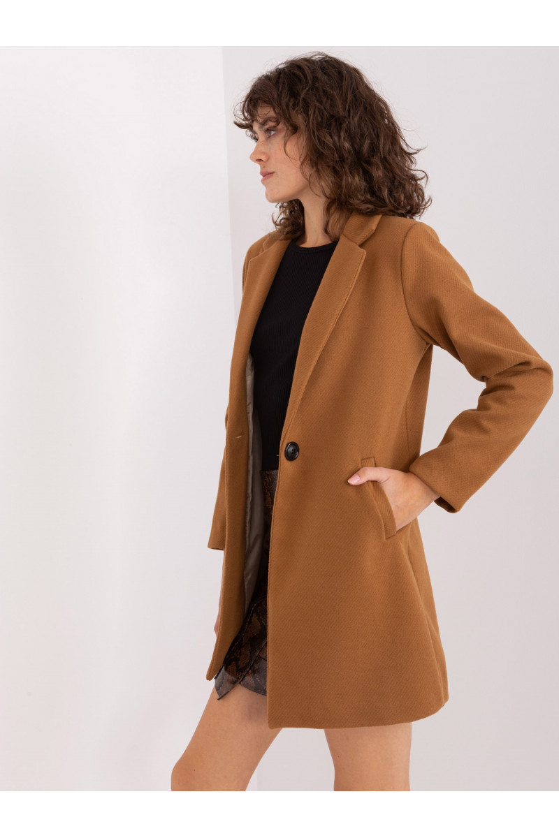 OCH BELLA gaiši brūns mētelis ar pogas aizdari .