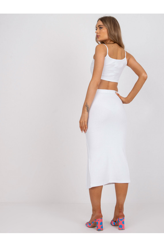 Komplekta izmēri S izmērā, mērot plakanu: augšdaļas platums zem padusēm - 30 cm, augšdaļas garums - 31 cm, svārku platums plkst. viduklis - 34 cm, svārku garums - 82 cm.