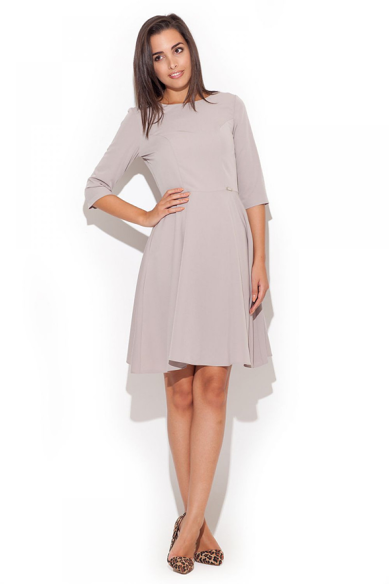 Eleganta asimetriska Kleita ar 3/4 piedurknēm, ar pagarinātu, kroku muguru. Kleitai nav kabatu. Piedāvājums, kas ideāli piemērots daudziem gadījumiem.