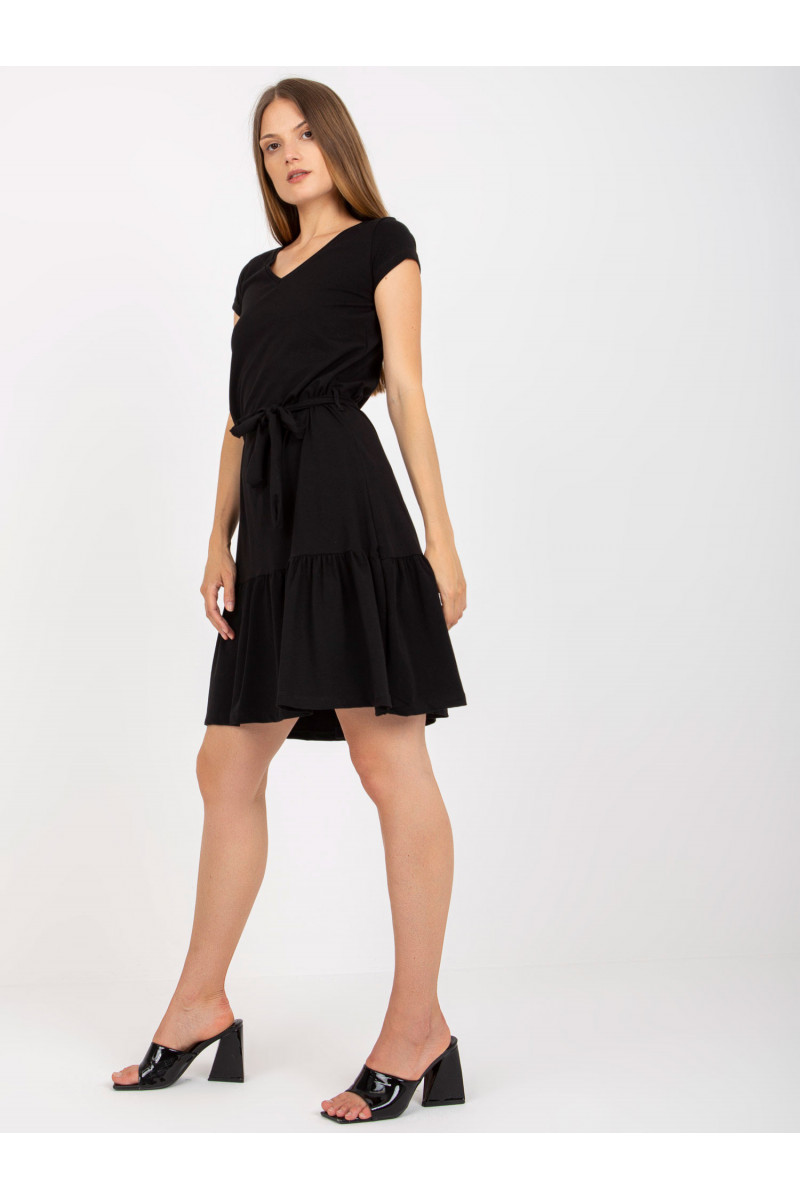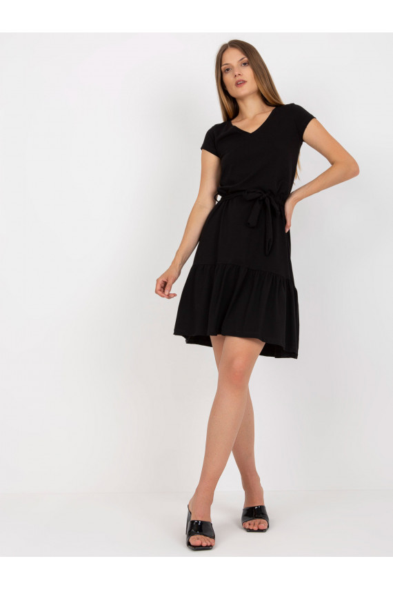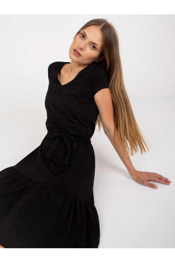 Melna kokvilnas kleita ar kaklasaiti RUE PARIS .