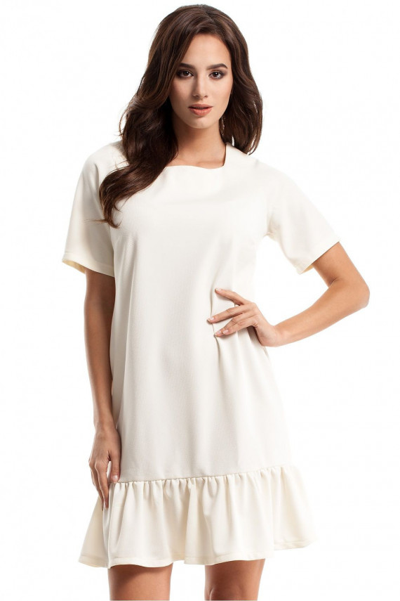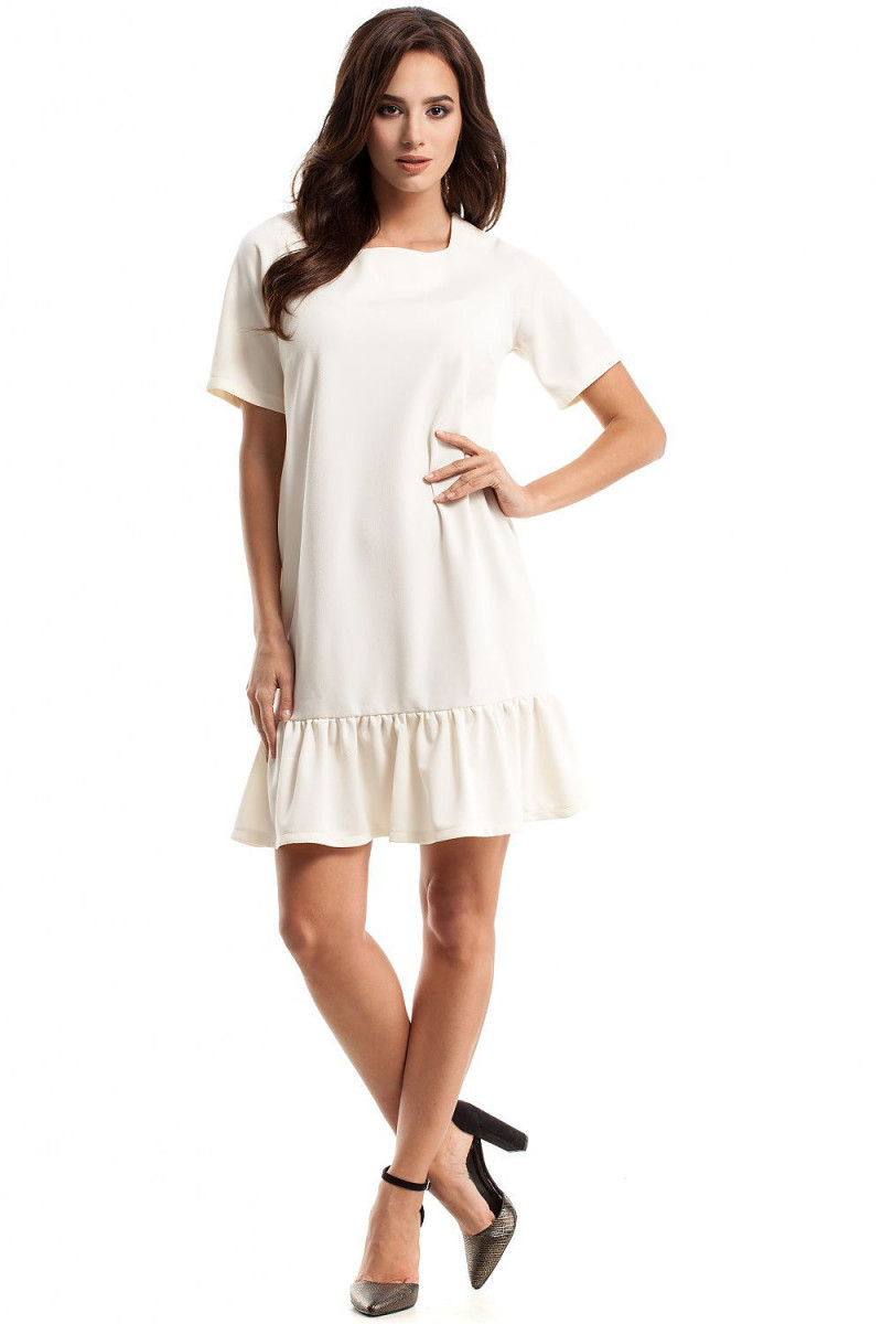 AndreRUE PARIS balta flounces kleita. mazgāšanas metode: veļas mašīna 30°C. Modelis valkā S izmēru. Modeļa izmēri: augums 180 cm, krūtis 89 cm, viduklis 63 cm, gurni 93 cm. Kleitas izmēri S izmēram mērot plakanu: platums zem padusēm - 46
