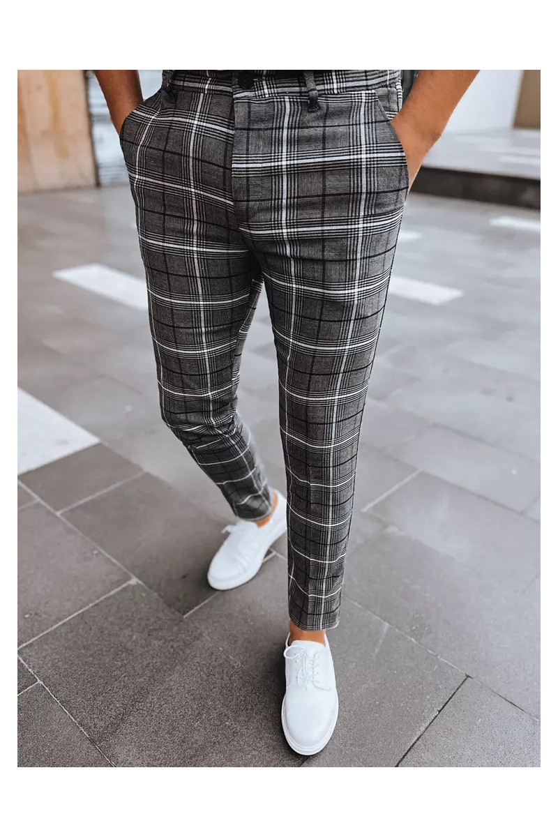 Vīriešu rūtas čino bikses, tumši pelēkas