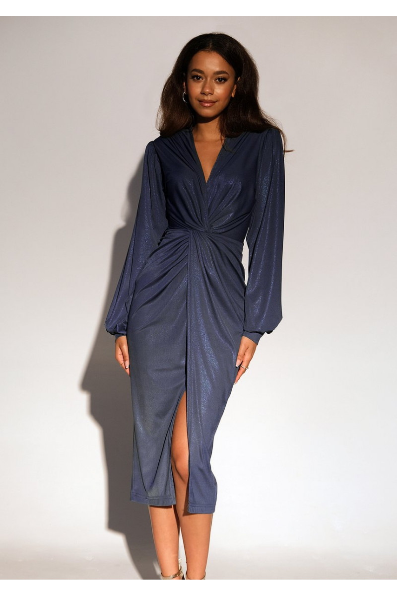 Labelle - tumši zila midi garuma kleita ar šķēlumu