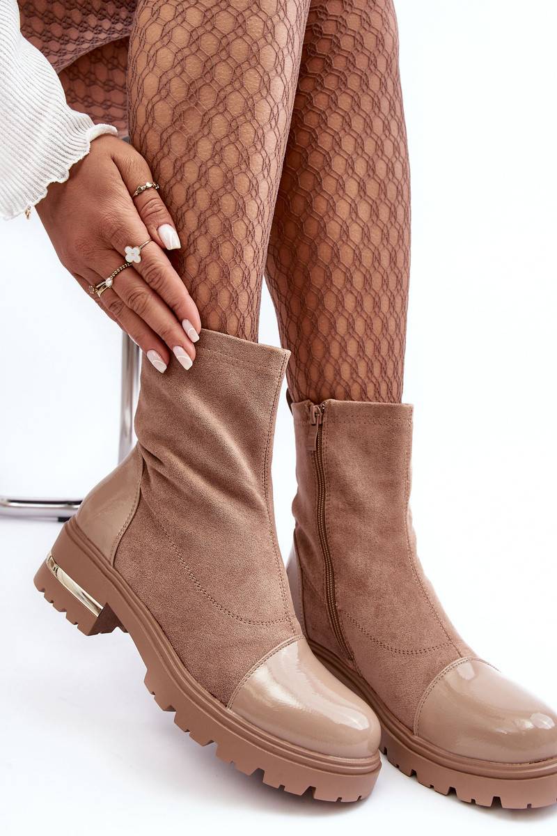 Klasiska modeļa Sieviešu puszābaki ar platiem papēžiem smilšu krāsas Shendete